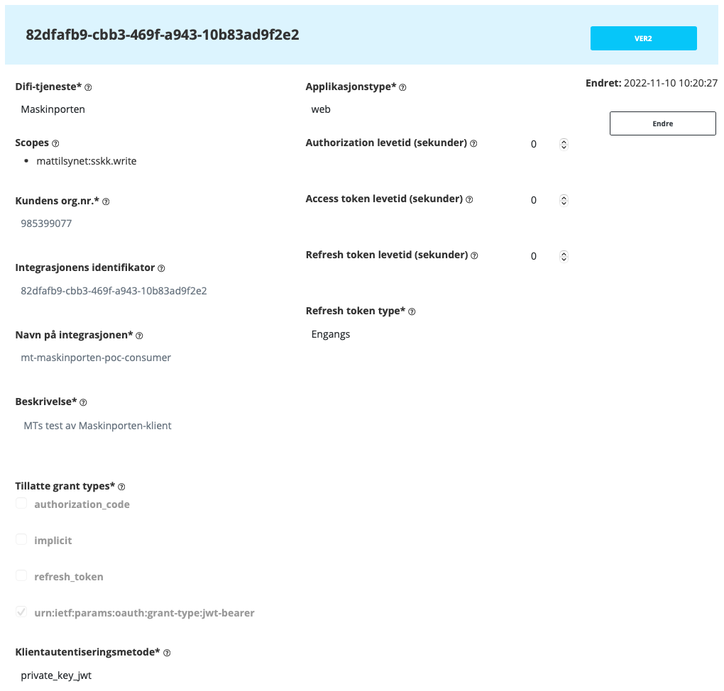 Se Selvbetjening web for mer informasjon, og det er altså rettigheten "Selvbetjening av integrasjoner i ID-porten/Maskinporten" som er viktig for api-konsumenter.